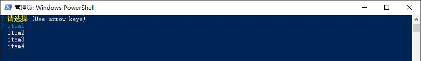 inquirer.prompt( { type: 'input', name: 'name', message: '请输入项目名称', default: 'unnamed' validate: (input: string) => { if (input.length > 255) { return '项目名称超过限制'; } return true; } }, { type: 'list', name: 'type', message: '请选择', choices: ['item1', 'item2', 'item3', 'item4'], default: 'project' }).then(answers => { console.log(answers.name); console.log(answers.type); });